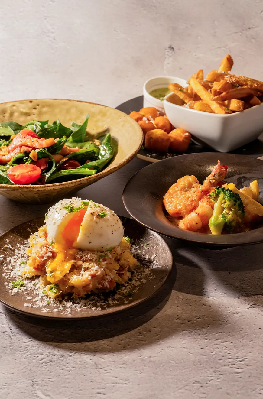 季節ごとの北海道食材を、洋食の技法でシンプルかつ華やかに仕立てた前菜や小皿料理。少し濃いめの味付けは、ワインやシャンパンと相性抜群です。道産魚介のカルパッチョ、旬野菜のオーブン焼き、道産豚のコンフィなど、軽やかに“北海道らしさ”を感じられる一皿をご提供いたします。