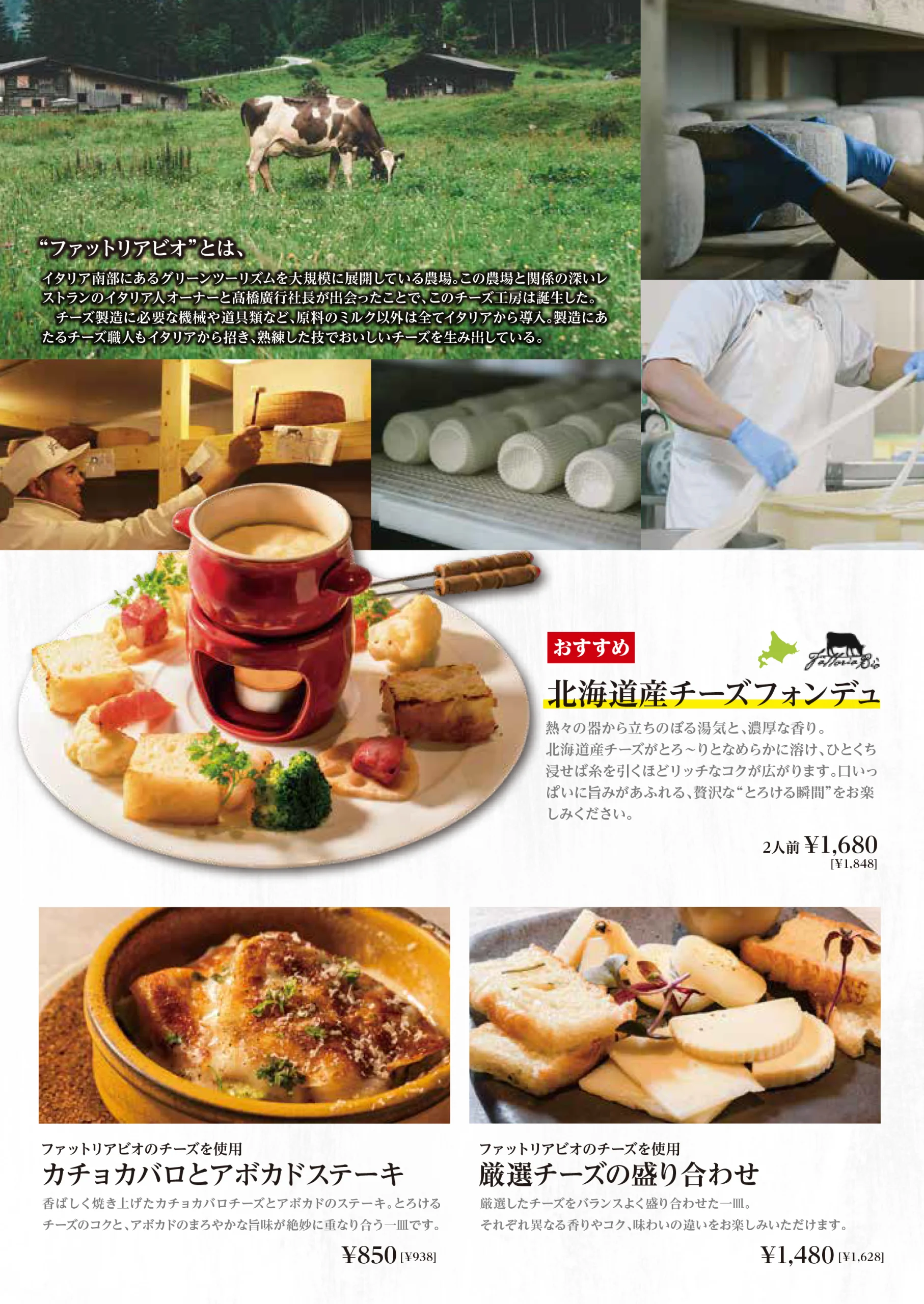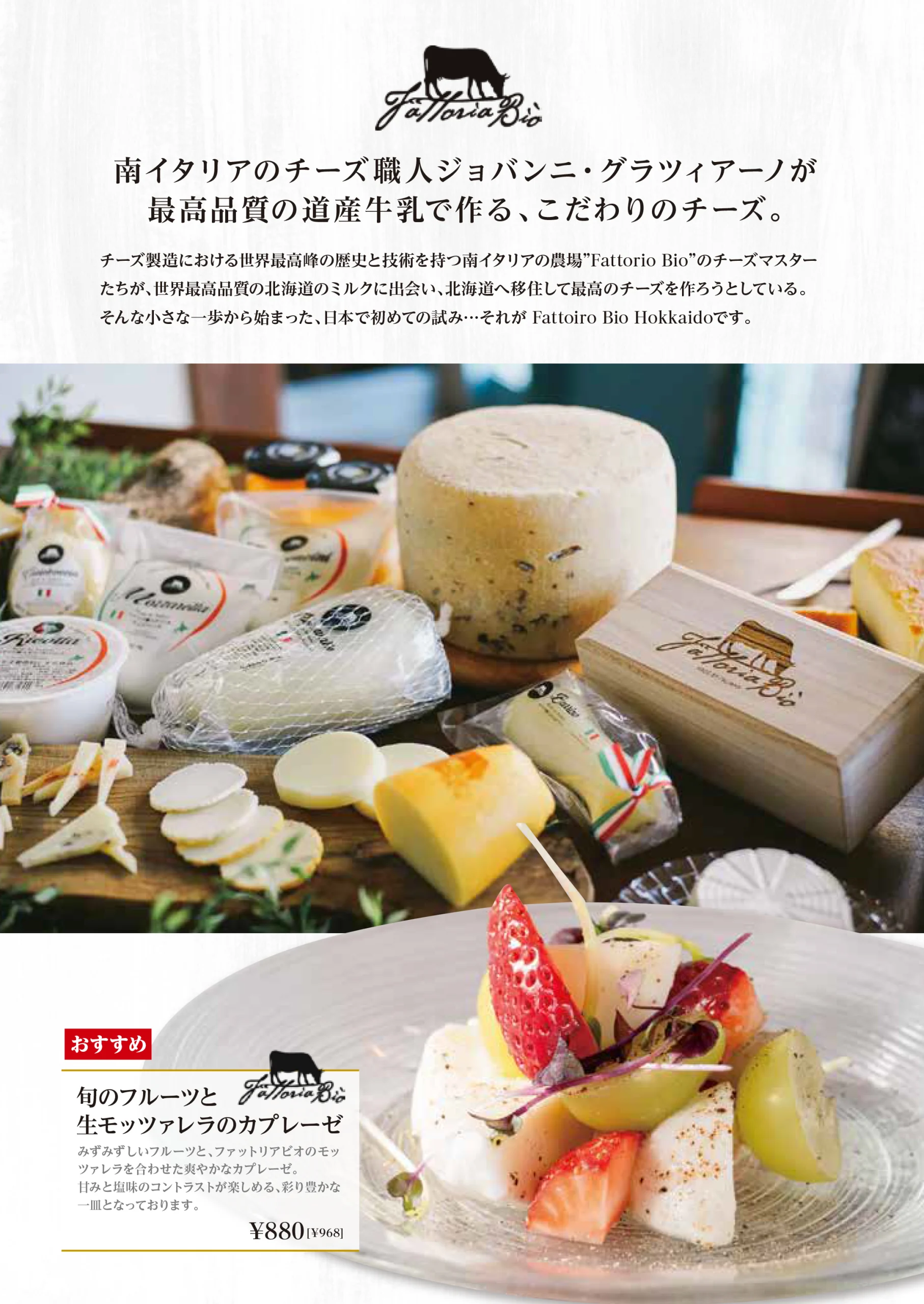 チーズ ドワ33では、北海道産チーズを中心に、 香り・コク・口溶けのバランスを楽しめるチーズ料理をご用意しています。 温度や組み合わせにこだわり、チーズ本来の魅力を引き出します。 とろりと溶けるフォンデュから、風味豊かな盛り合わせまで。 ワインやお酒と合わせることで、 より一層深まる味わいをお楽しみください。