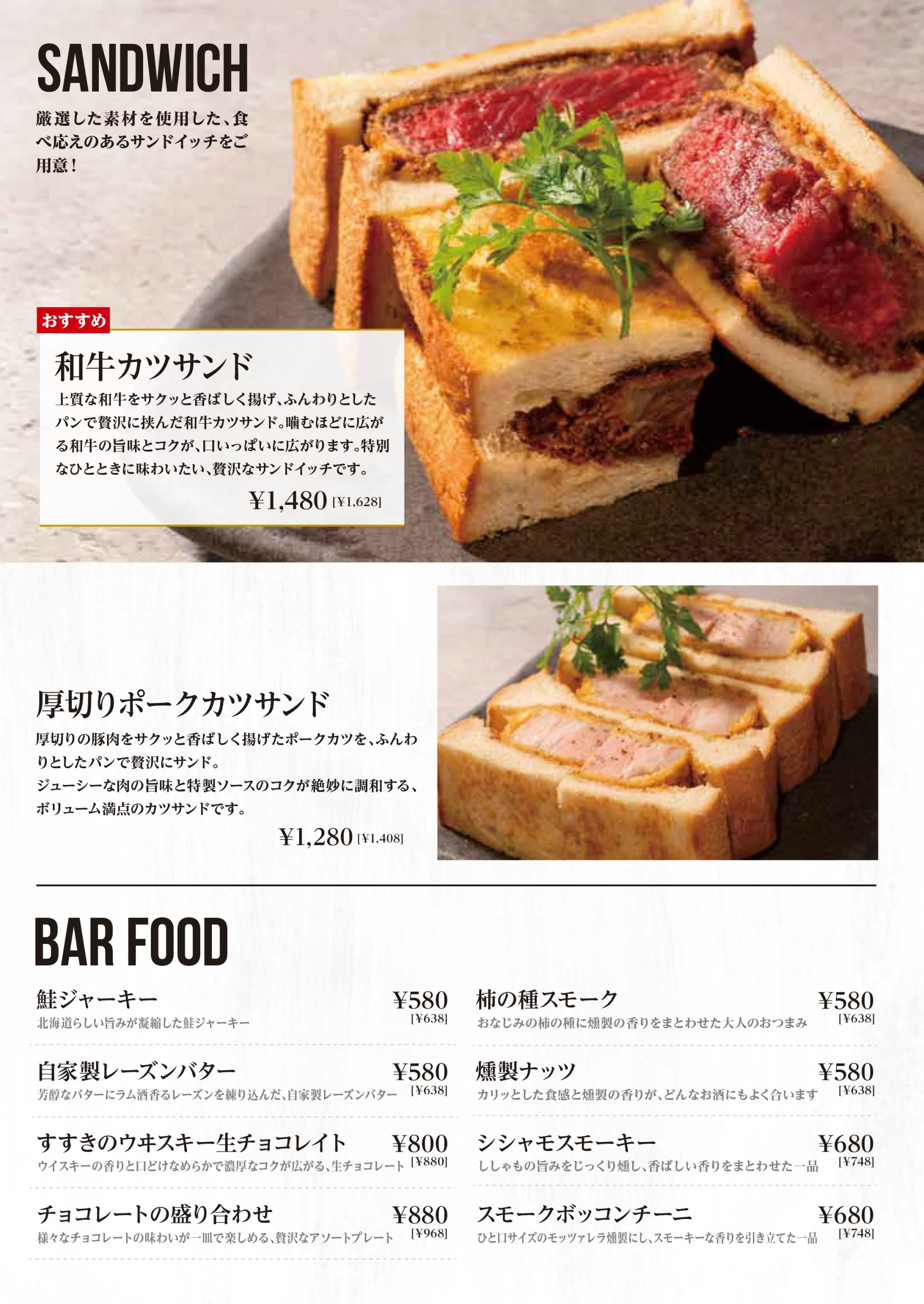 厳選した素材を使用した、 食べ応えのあるサンドイッチをご用意。